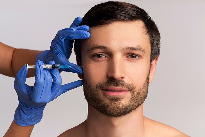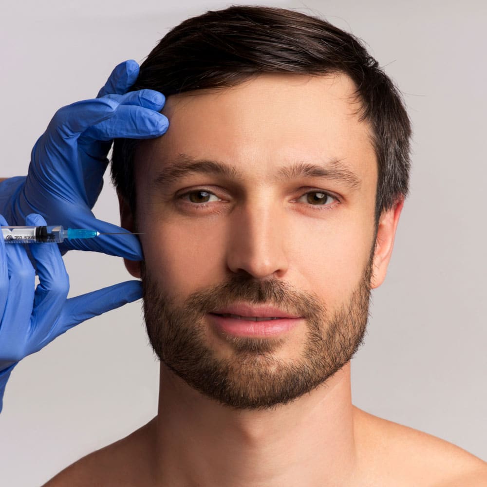 Dermal fillers for men are anti-aging injectables that contain various compounds of hyaluronic acid. This naturally occurring compound is renowned for retaining moisture while lifting facial areas that have started to sag as a result of the aging process. When injected into key facial areas, dermal fillers act as scaffolding underneath the dermis and lift the sagging areas, creating a naturally youthful appearance that lasts for up to eighteen months.